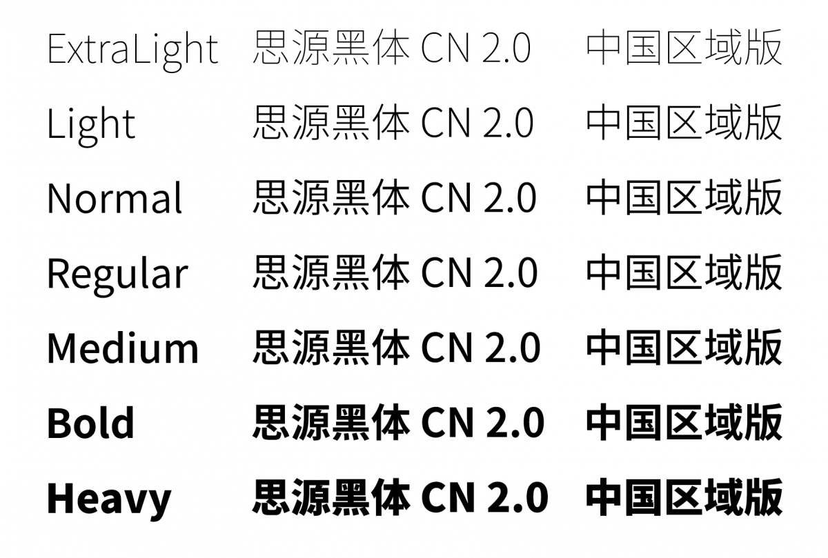 思源黑体(Source Han Sans)是Adobe与Google历时三年联合开发,并于2014年7月推出的一款开源字体。作为一款全新的桌面级Pan-CJK字体家族,它全面支持简体中文、繁体中文、日文和韩文,同时融入了广受欢迎的Source Sans字体家族的拉丁文、希腊文和西里尔文字符。